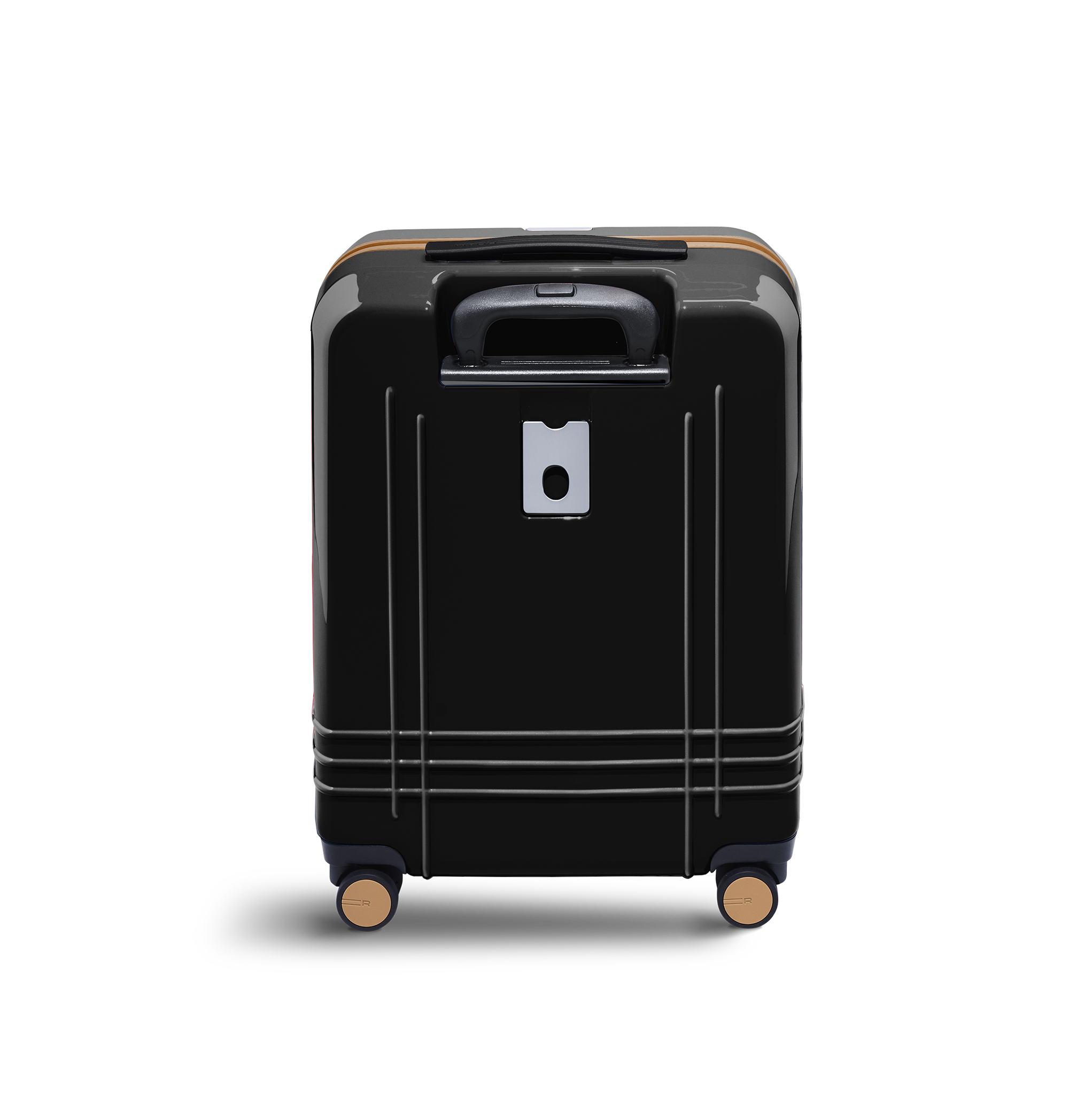 A complimentary monogram showcased onto a brushed steel plate that doubles as a cover for a pocket to tuck your business card or contact details in case your bag is misplaced.