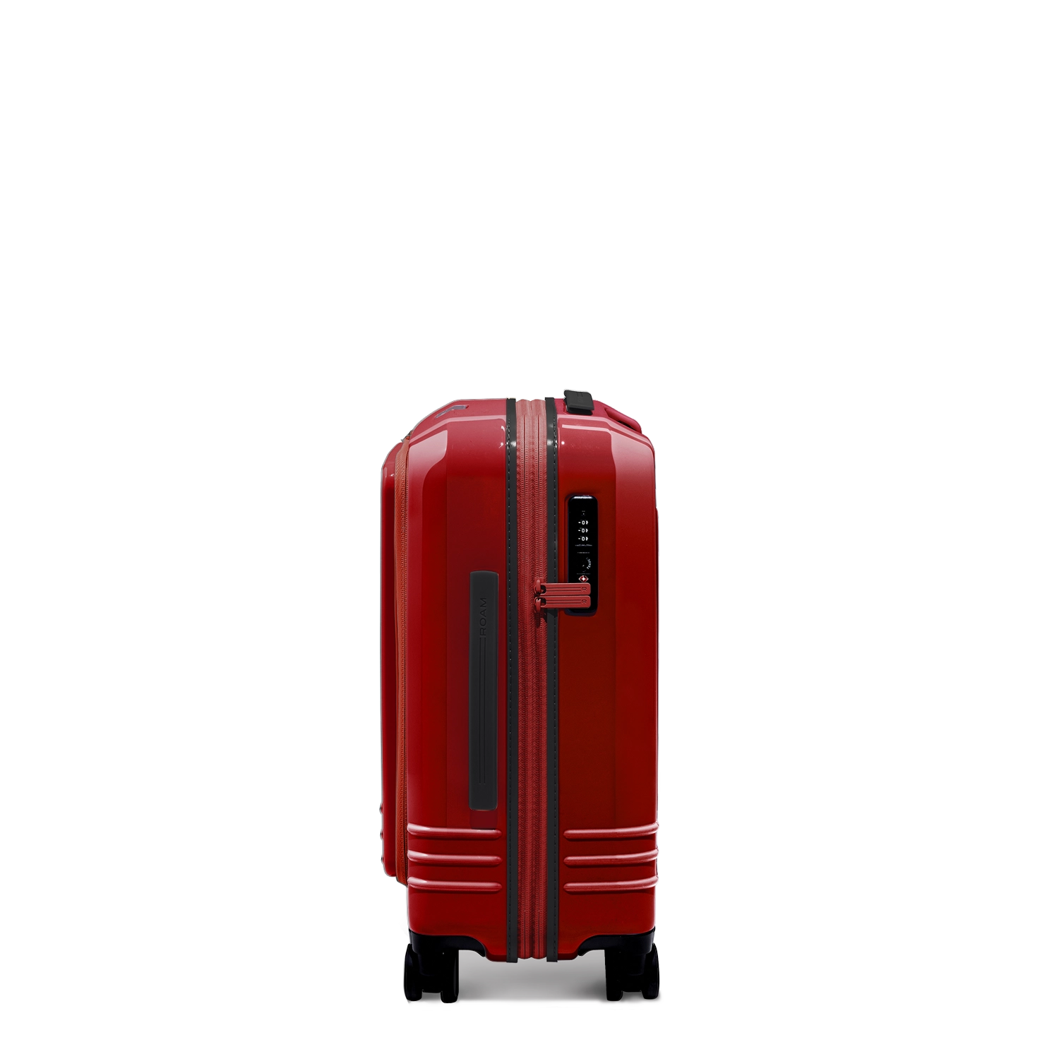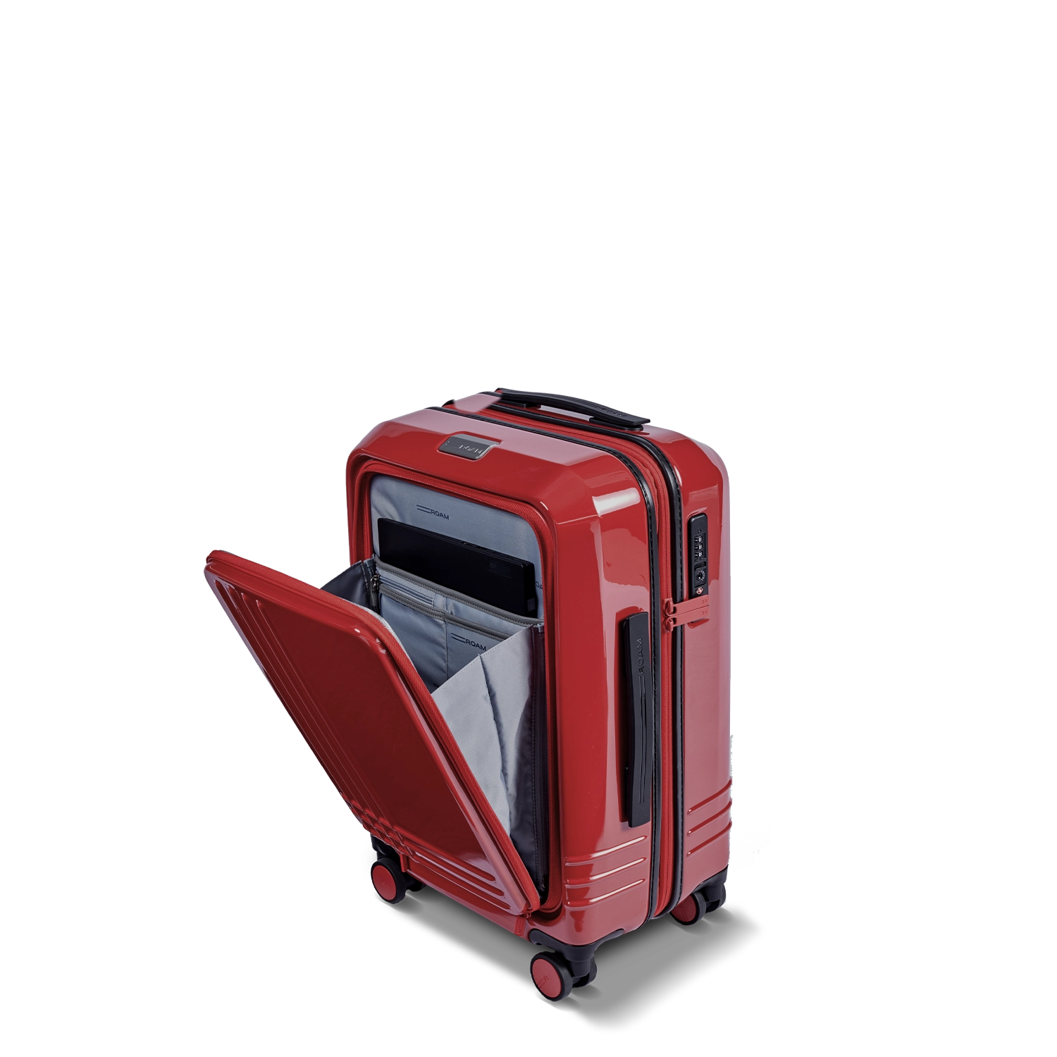 The ROAM Front Pocket Carry-On Expandable is a premium hard shell carry-on suitcase with laptop pocket, featuring a padded front compartment that fits up to a 17" laptop, an expandable design adding up to 31% more capacity, and an ultra-light recycled polycarbonate shell sized to fit most major US airline overhead bins. With smooth 360° spinner wheels, a multi-stop telescoping handle, dual compression boards, zip divider, recycled antimicrobial lining, a TSA-approved lock, and ROAM’s signature racing-stripe trim plus monogrammable ID plate, this expandable laptop carry-on luggage keeps travel essentials organized, protected, and easy to access for modern business and frequent flyers.