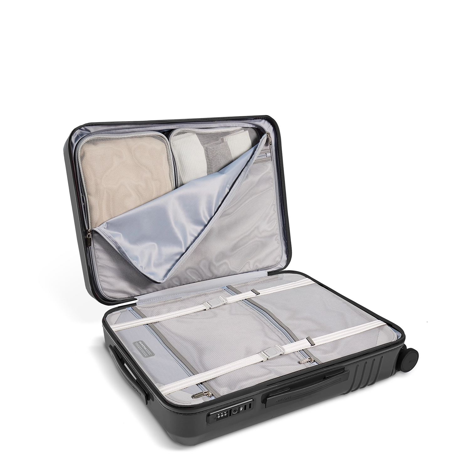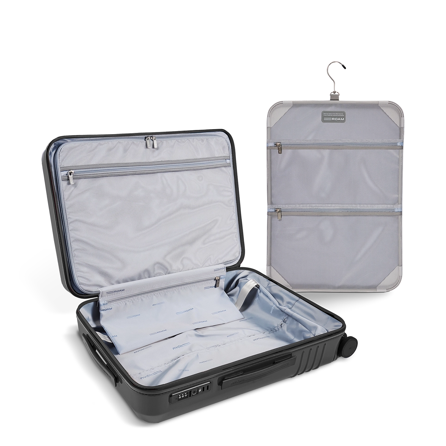 Built-in compression boards gently press your clothes to make room for more, without crumpling a thing. Plus, one board doubles as a hanging board, ideal for organizing your luggage on the go.