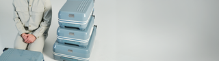 A breath of fresh air. Our ethereal shiny slate exterior is accented across the handles and binding framing the case in a "snowcap" of white making for a light and breezy look.