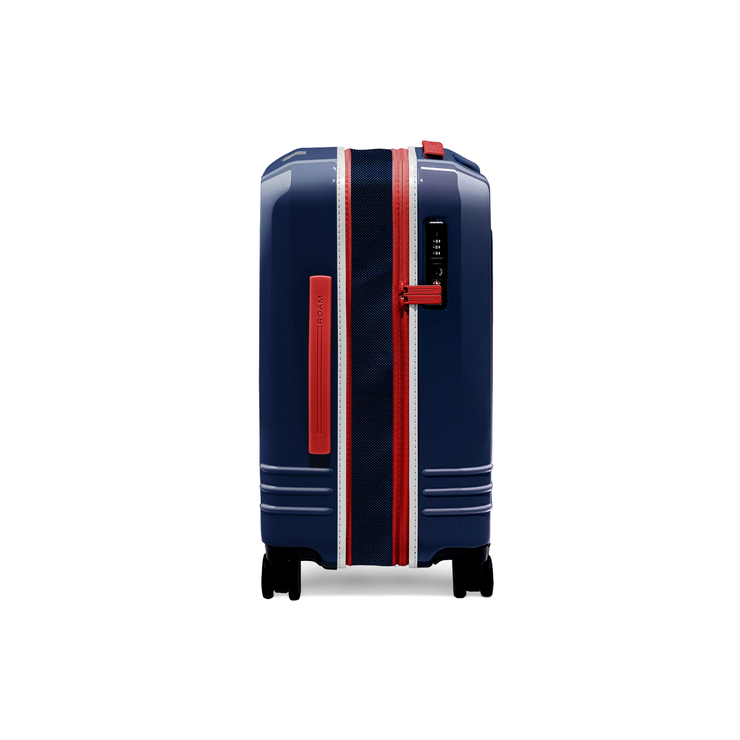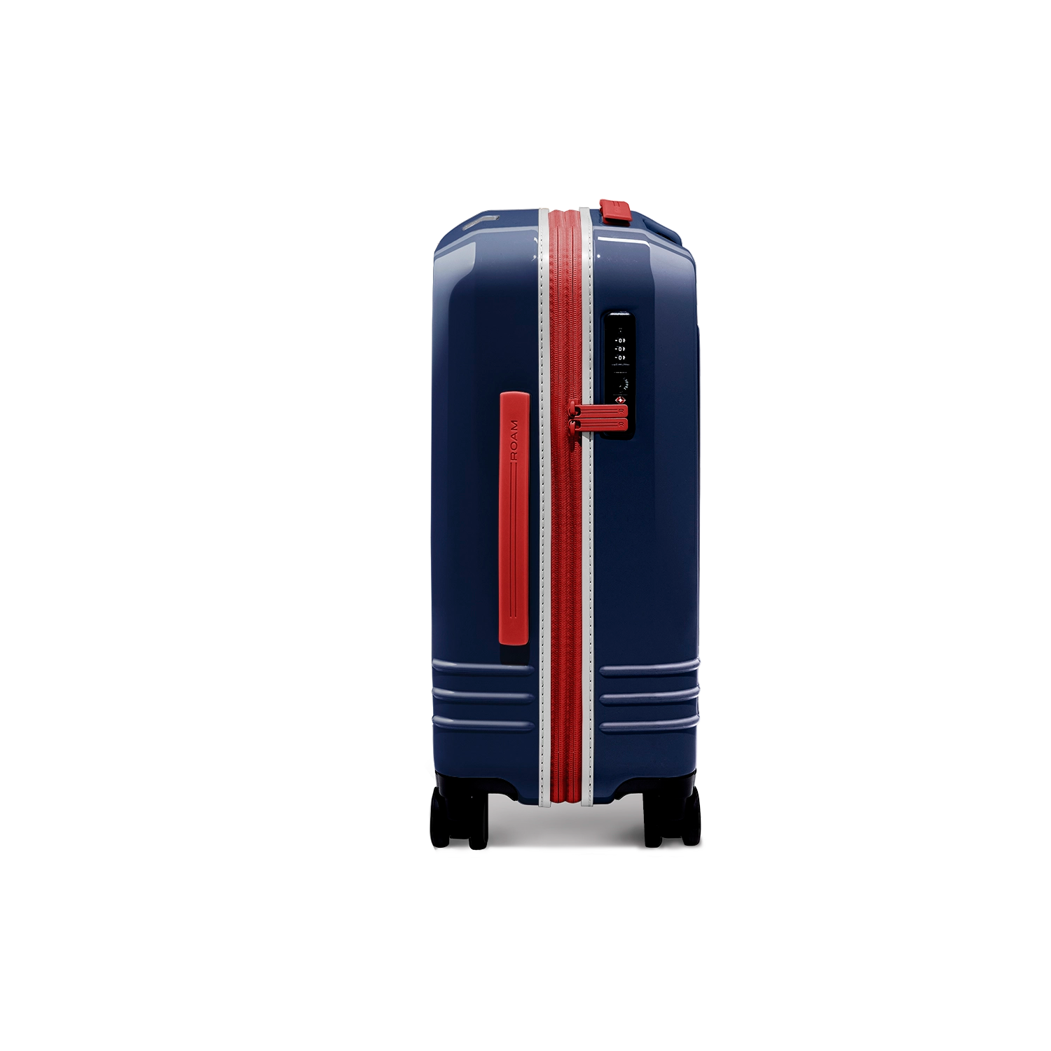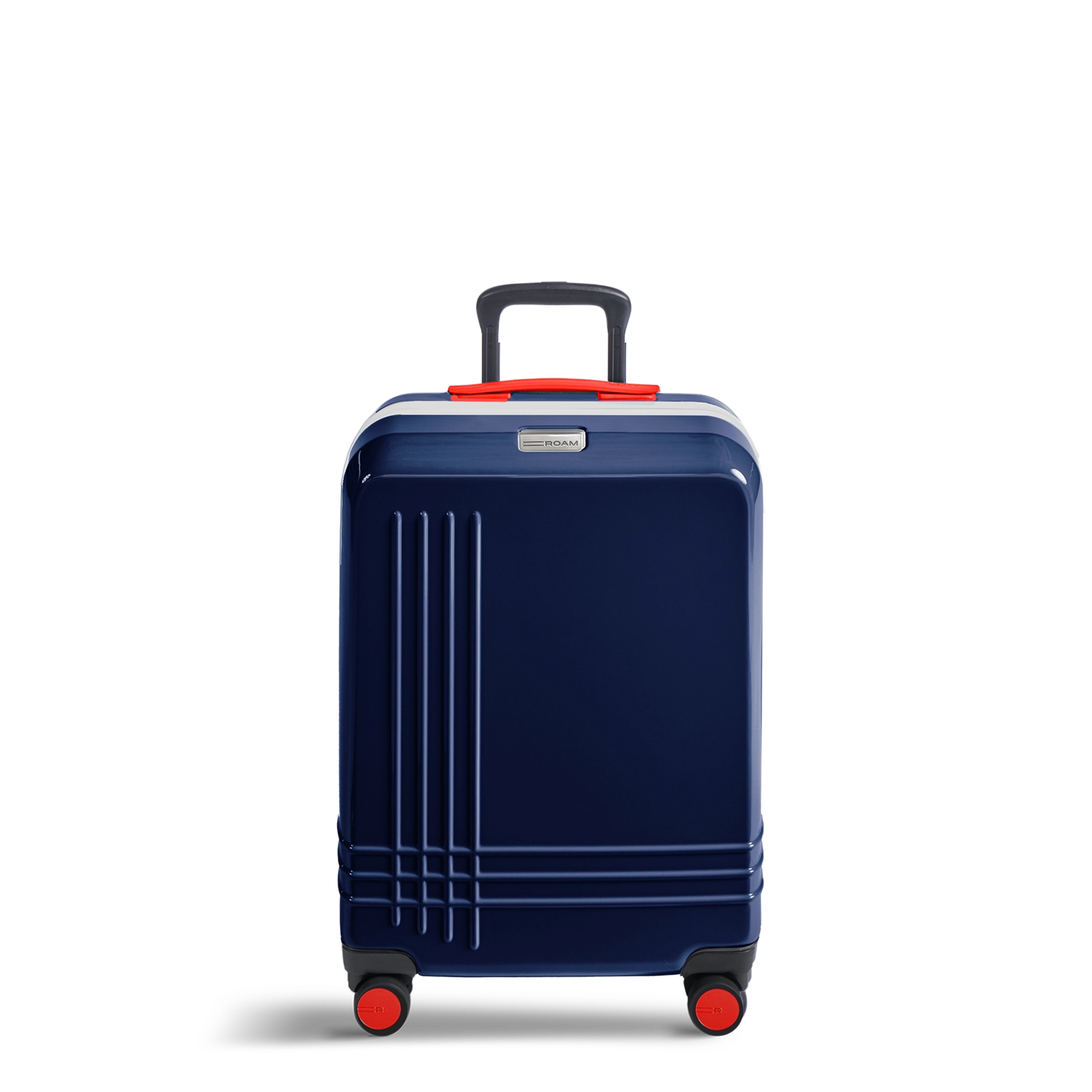 The ROAM Large Carry-On Expandable is a premium hard shell carry-on suitcase designed to maximize space while staying within most airline carry-on size limits. This ultra-light 4-wheel spinner features smooth 360° wheels, a multi-stop telescoping handle, and chamfered edges that slide easily into overhead bins. Zip open the expandable carry-on luggage gusset to unlock up to 32% more packing capacity, while dual compression boards, a removable hanging compression panel, and recycled antimicrobial lining keep clothes organized, compact, and fresher in transit. Finished with ROAM’s signature racing-stripe trim, reinforced corners, a convenient bottom grab handle, and a lifetime warranty plus monogrammable ID plate, this expandable cabin suitcase is the ideal choice for frequent flyers who want durable, stylish, and highly functional carry-on luggage.