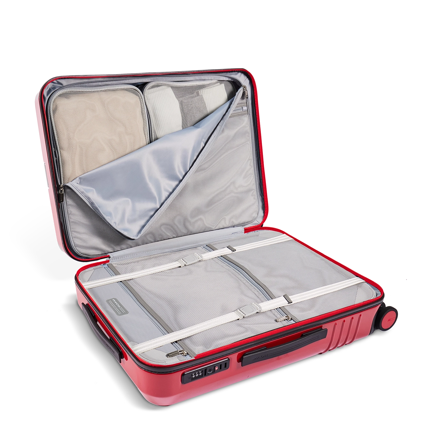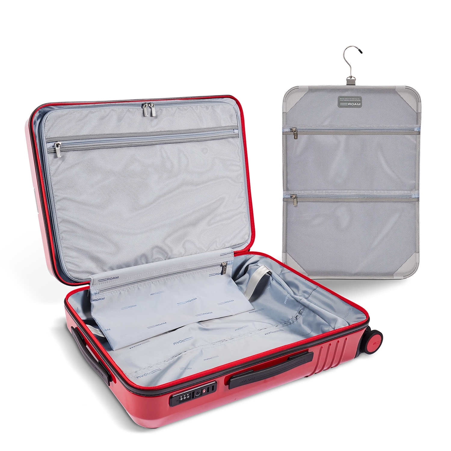The ROAM Large Check-In is a premium large checked suitcase crafted from ultra-light, impact-resistant recycled polycarbonate hard shell with generous large check-in luggage capacity, a smart interior compression system, zippered divider, and organizer board to keep clothes, shoes, and travel essentials neatly in place. Smooth-rolling 360° spinner wheels, a multi-stop telescoping handle, TSA-approved combination lock, water-resistant zippers, recycled antimicrobial lining, ROAM’s signature racing-stripe trim, and a complimentary monogrammable ID plate make this lightweight large check-in suitcase the ideal checked luggage for stylish, frequent travelers who demand durability, organization, and modern design.